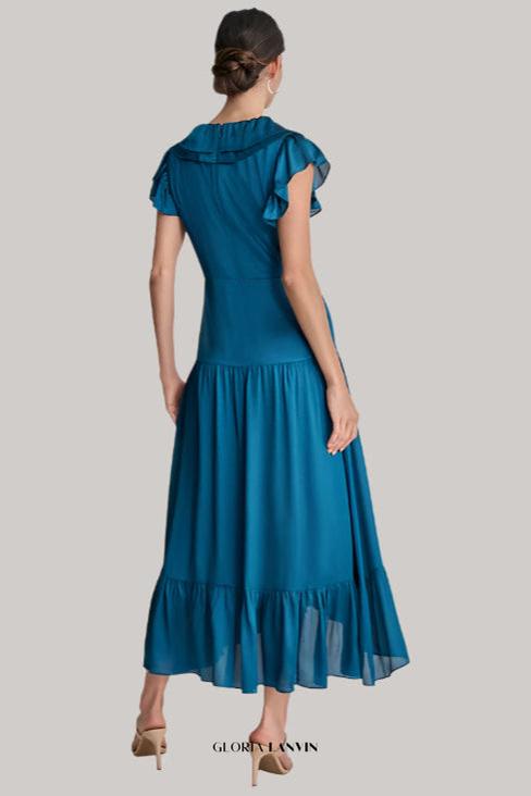 Elevate your style with this Ruffled Crinkle-Textured Maxi Dress in dark blue. The lightweight fabric and ruffled design create an effortlessly chic look. Perfect for any occasion, this dress will make you stand out with its flattering fit and unique texture.