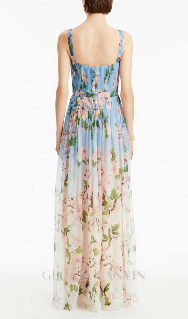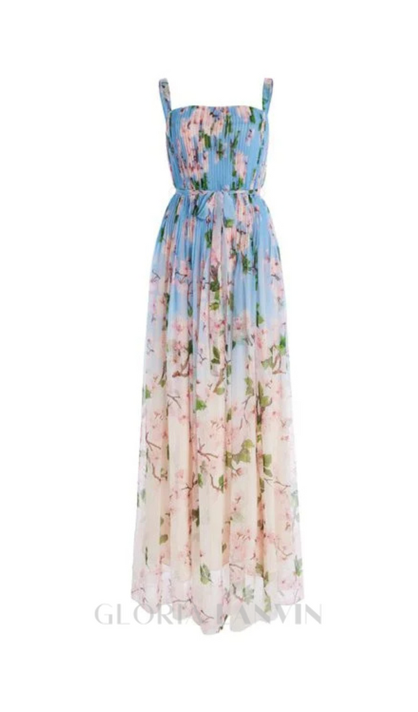 xaviera pleated silk chiffon gown in blue – Gloria Lanvin