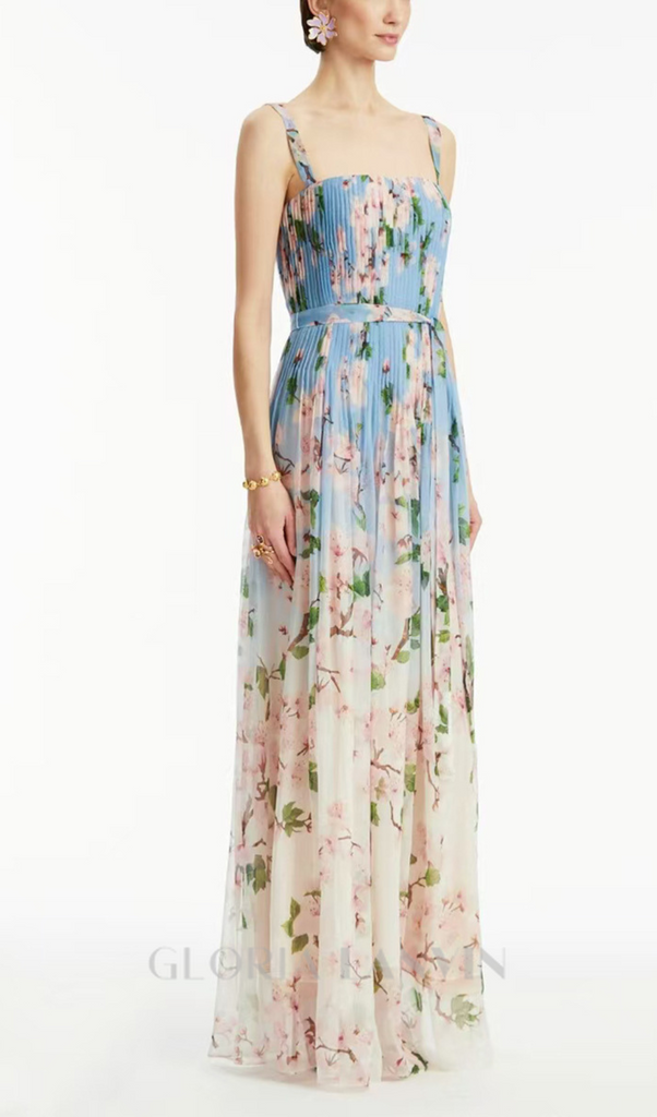 xaviera pleated silk chiffon gown in blue