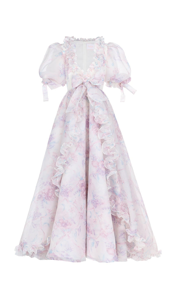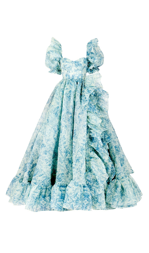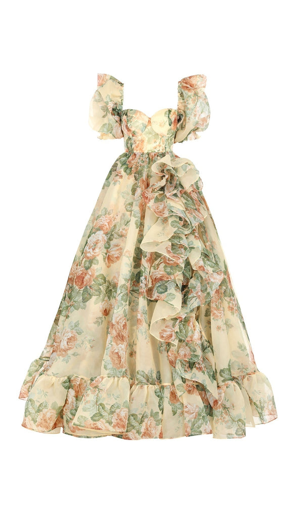 PUFF SLEEVE FLORAL PRINTED MAXI DRESS