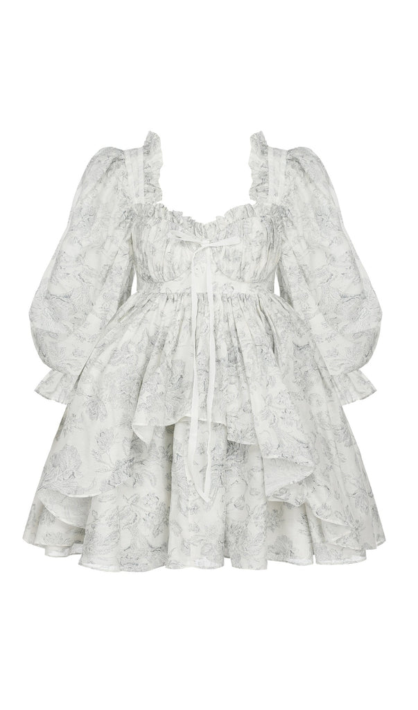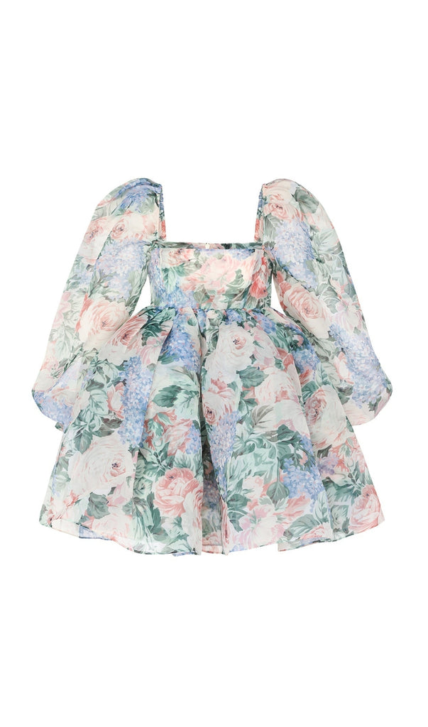 PUFF LONG SLEEVE FLORAL MINI DRESS