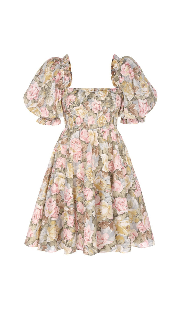PUFF SLEEVE FLORAL MINI DRESS