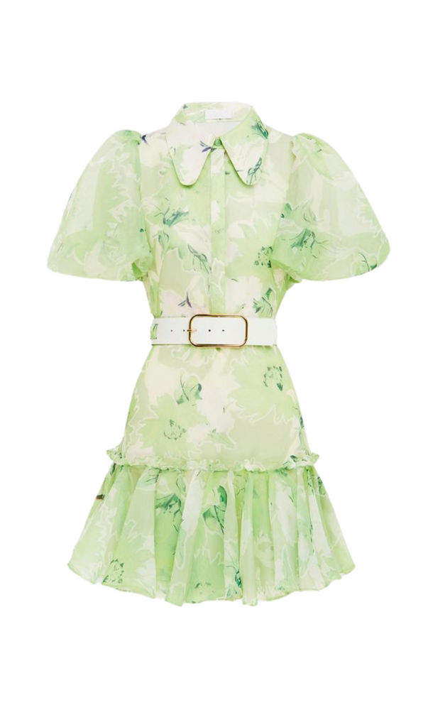 SHORT SLEEVE MINI DRESS IN JASMINE PRINT IN SAGE