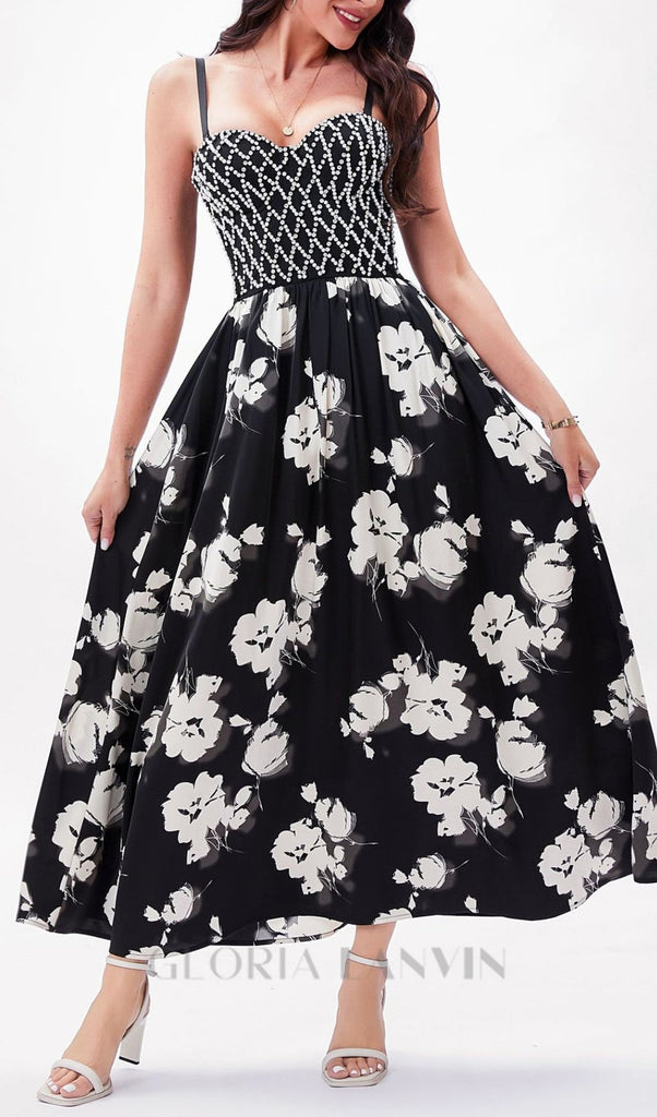BLACK BEAD FLORAL MAXI DRESS