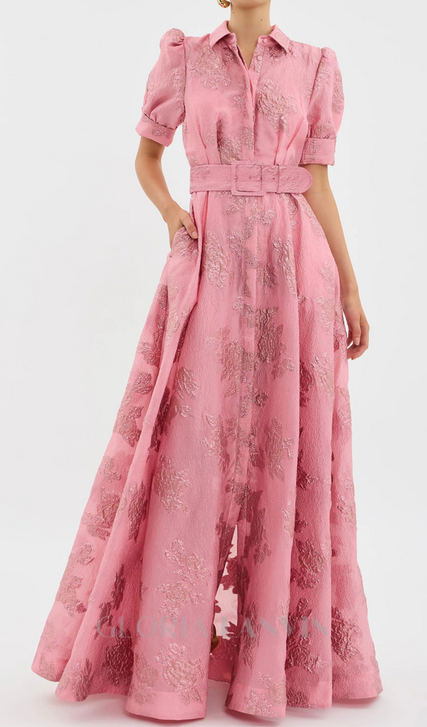 Annette floral embellished Button Gown in pink
