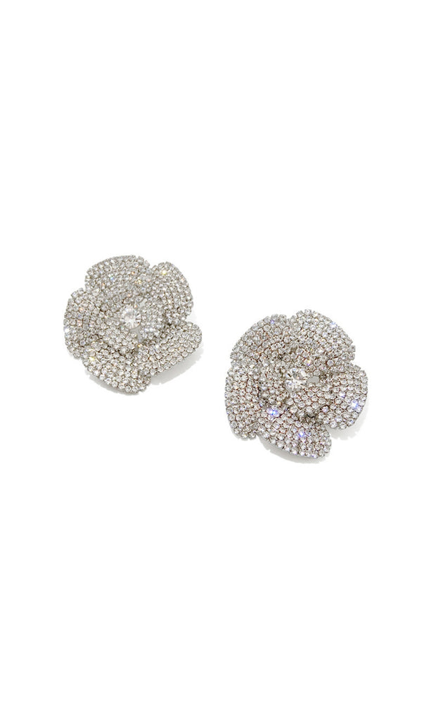 SILVER FIVE-PETAL RHINESTONE EARRINGS