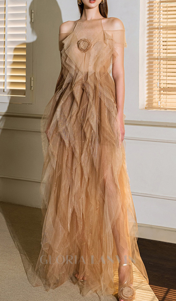 Aonaver Floral Ruffle Halter Maxi Dress in White