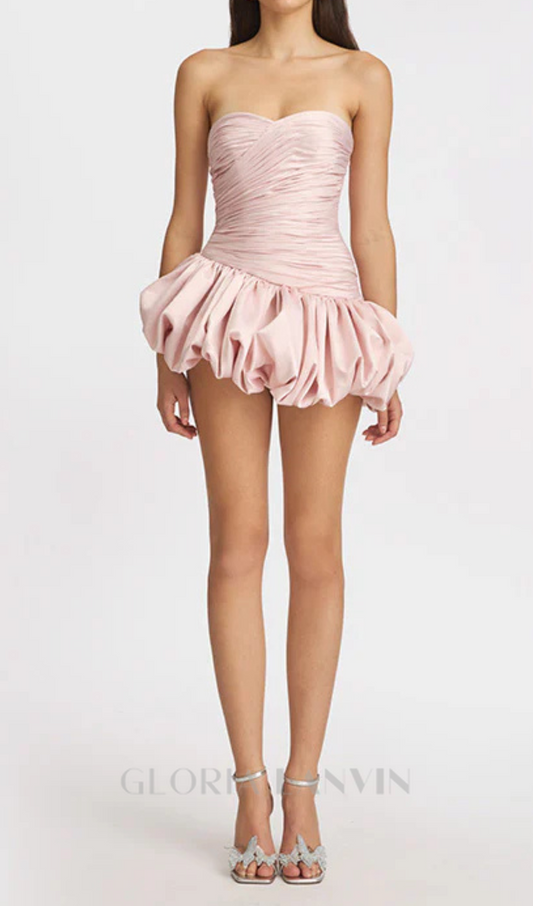 PINK BOW EMBELLISHED STRAPLESS MINI DRESS SET