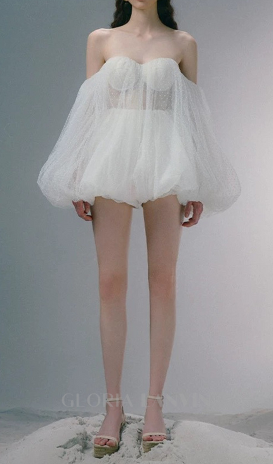 BESTE WHITE STRAPLESS A-LINE MINI DRESS