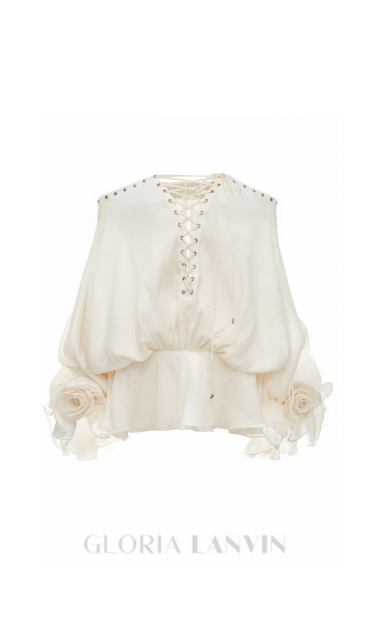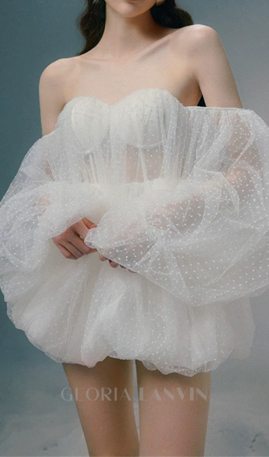 Ribbon Puff-sleeve Princess A-line Derss in white