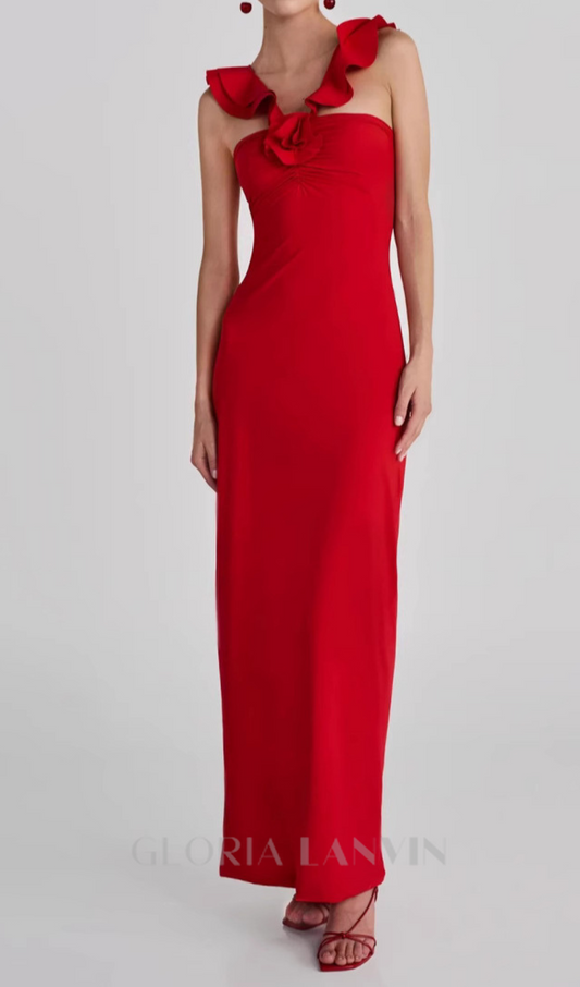 ANNONA RED FLOWER EMBELLISHED MAXI DRESS
