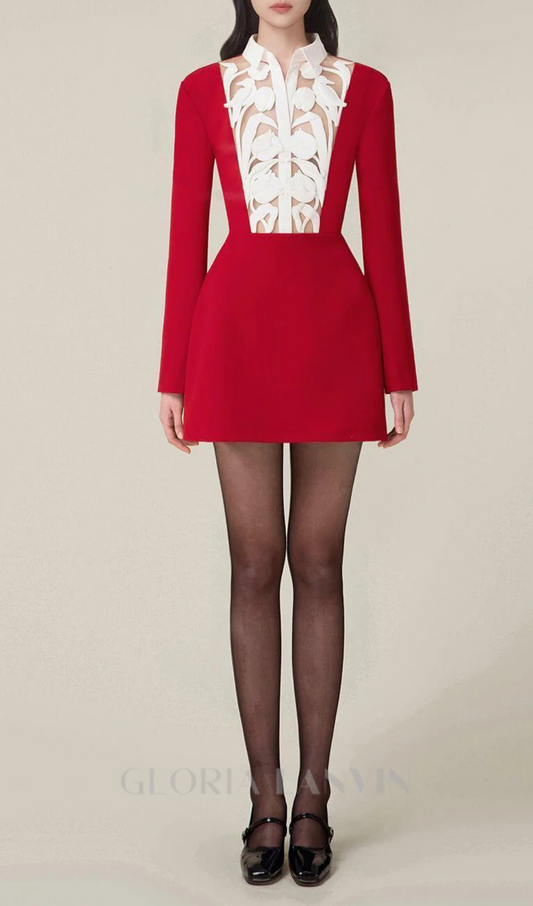 hollow a-line mini Dress in red