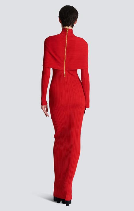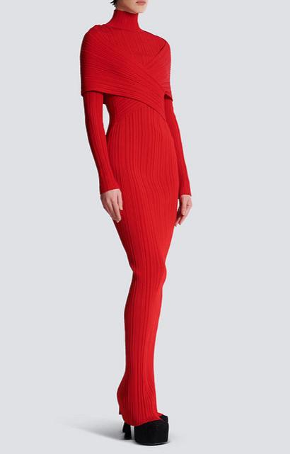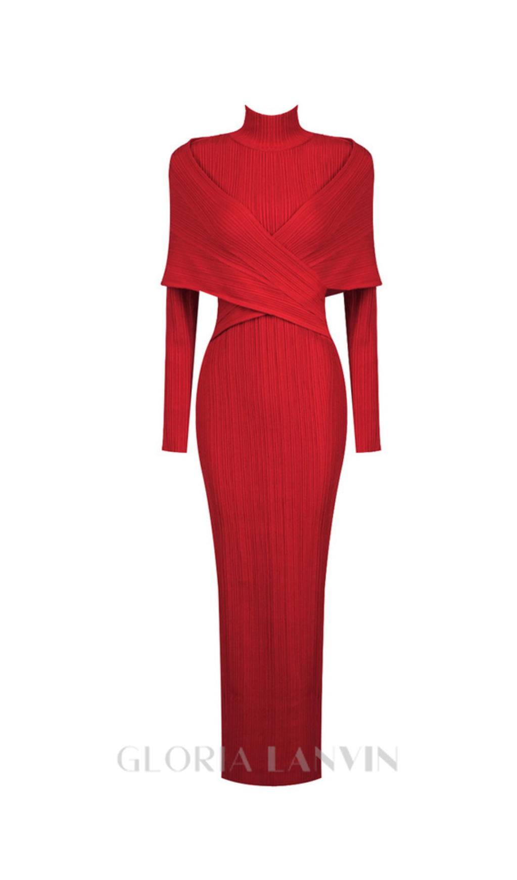 long sleeve pleated knit maxi dress in red – Gloria Lanvin