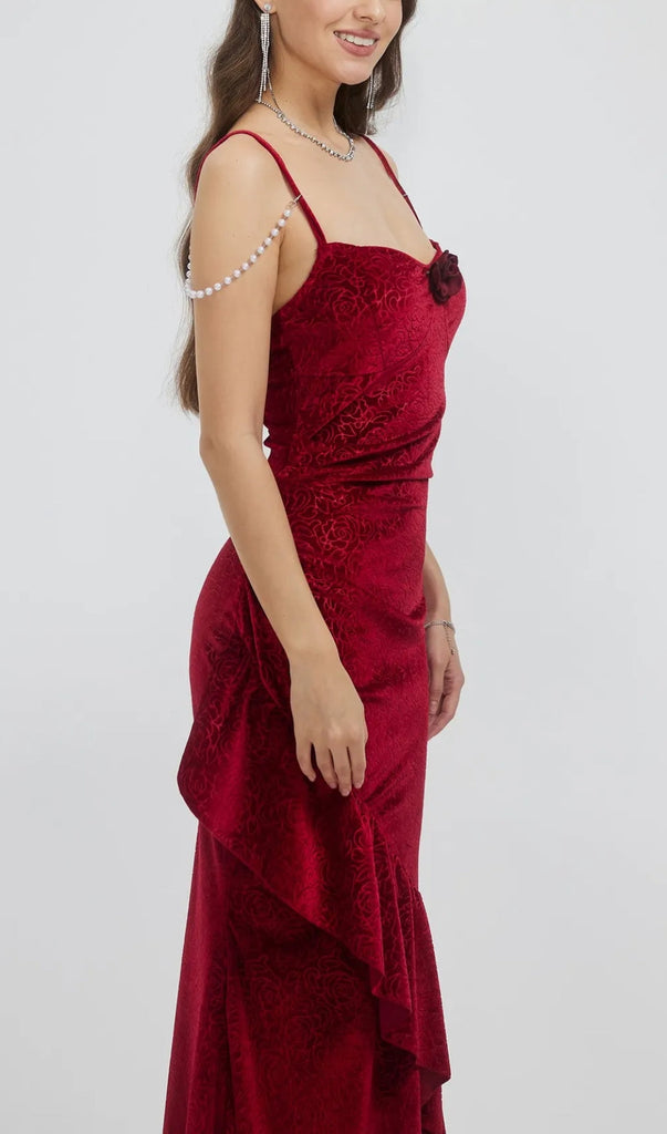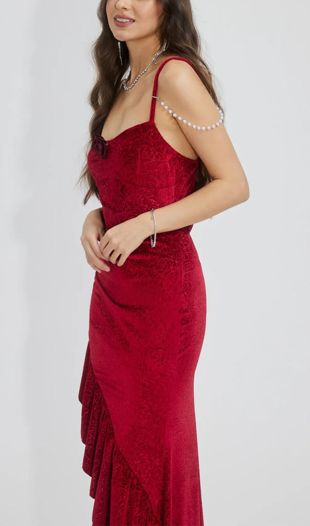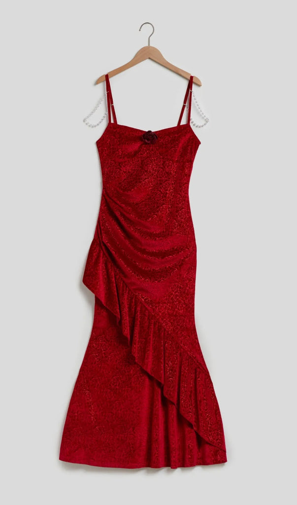Stand out from the crowd in this stunning red Ruffled Bodycon Suspender Maxi Dress! This statement dress is perfect for making a daring fashion statement - you’re sure to be the star of the show! With its flattering bodycon fit and ruffled skirt, this dress is sure to have you feeling like a million bucks!