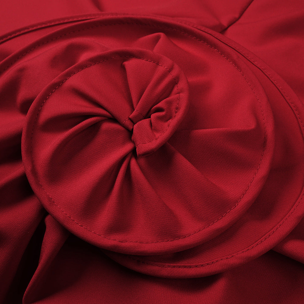 This sculptural rose mini dress in red is the perfect blend of art and fashion. The unique sculpted rose design adds a touch of elegance to this dress, while the vibrant red color makes a bold statement. Crafted with high-quality materials, this dress is not only visually stunning but also comfortable to wear. Elevate your style with this one-of-a-kind piece.