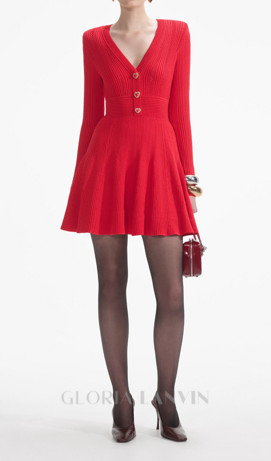 VICTORIA POINTELLE KNIT MINI DRESS IN RED