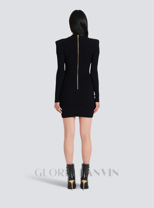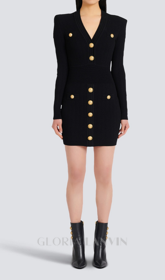 TARA BLACK SHORT KNITTED MINI DRESS WITH GOLD BUTTONS