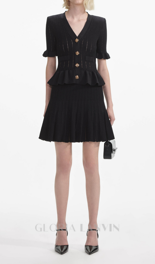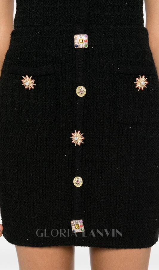 jewel buttons knitted mini skirt in black