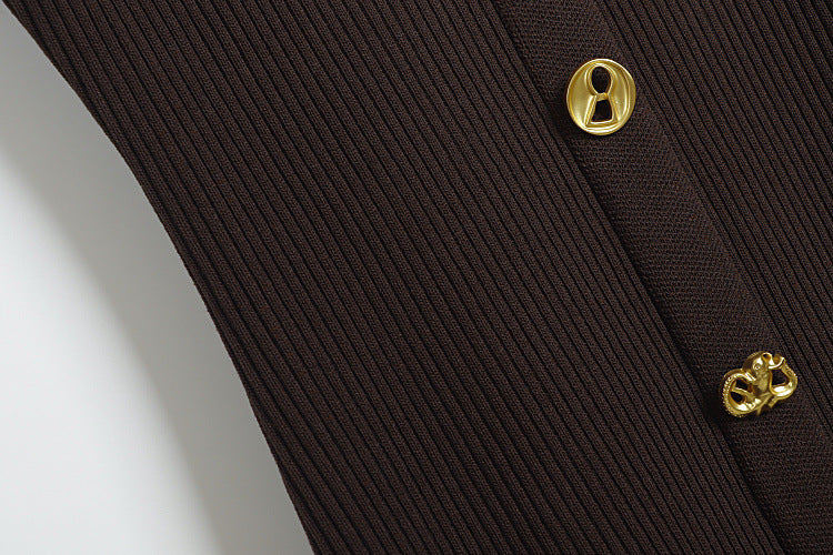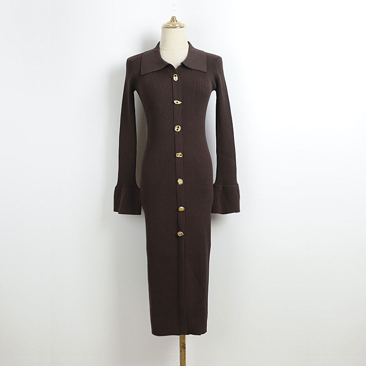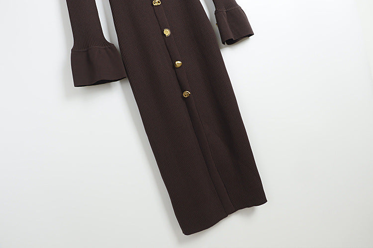 xaviera Contour V Neck Long Sleeve Knit Mini Dress