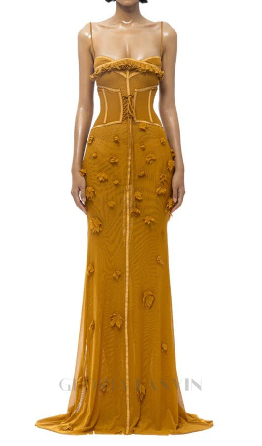 CARYS STRAPPY PETAL MAXI DRESS in yellow