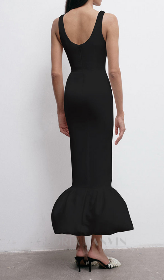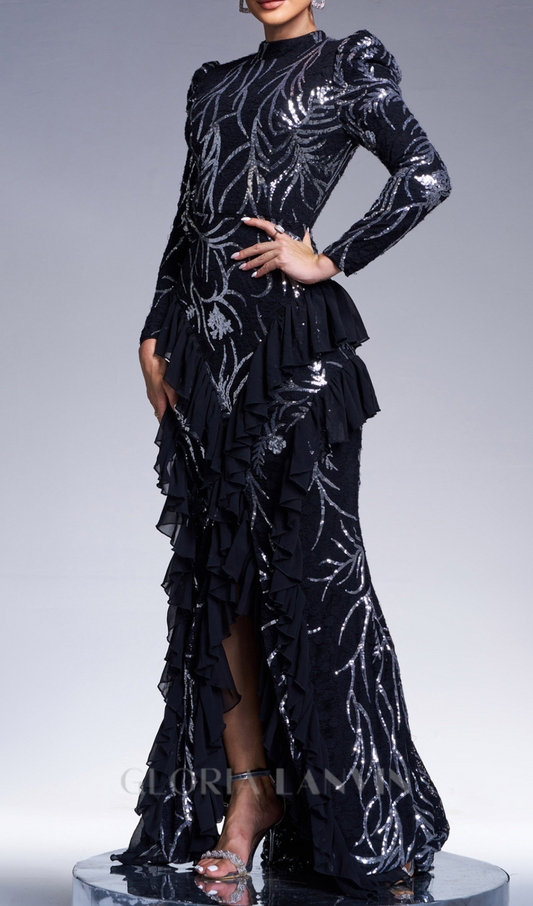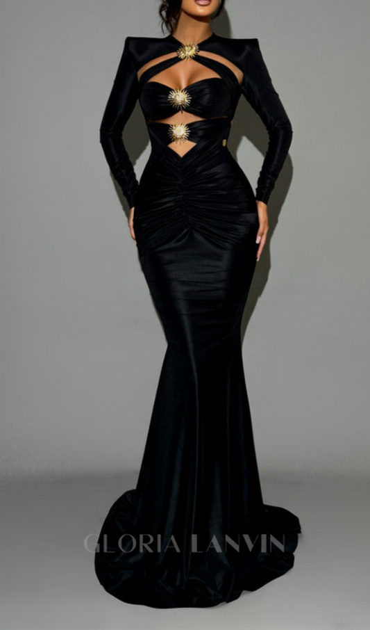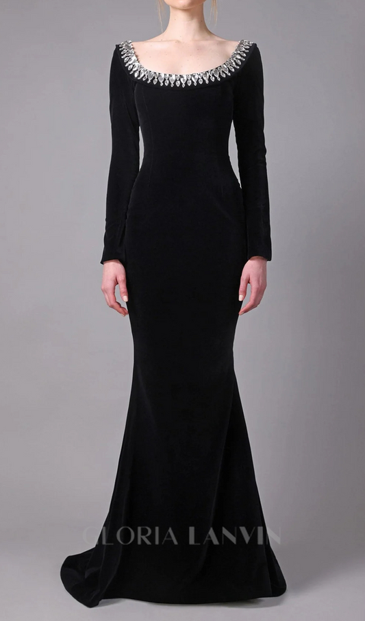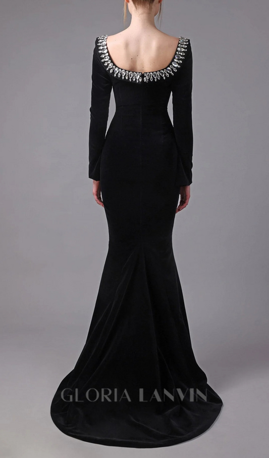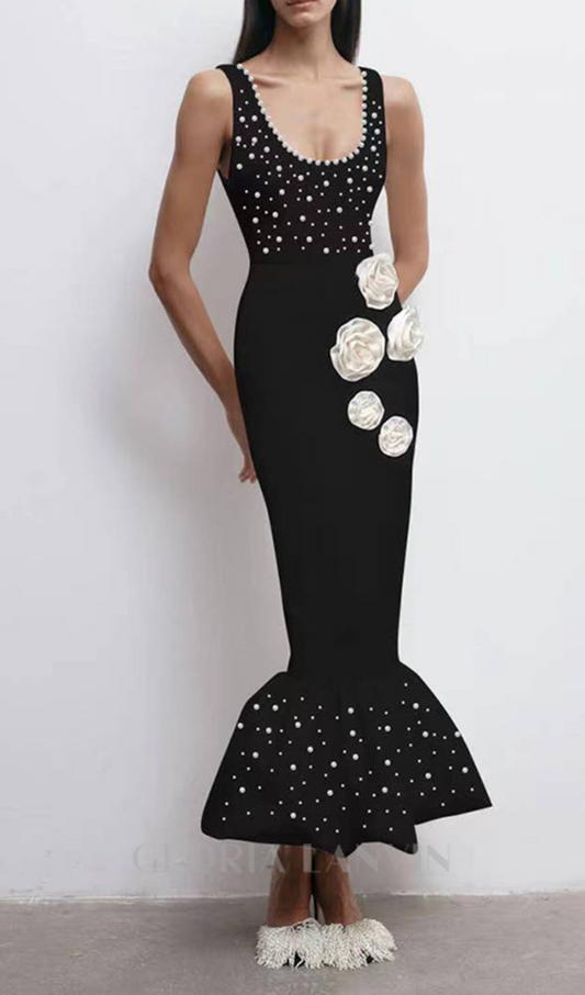 DORIS FLORAL PEARL EMBELLISHED MERMAID BLACK MAXI DRESS