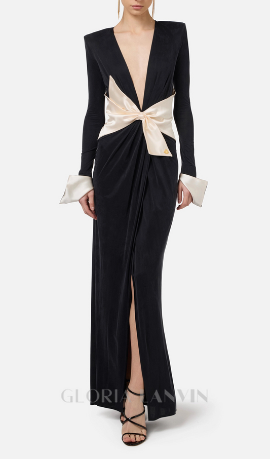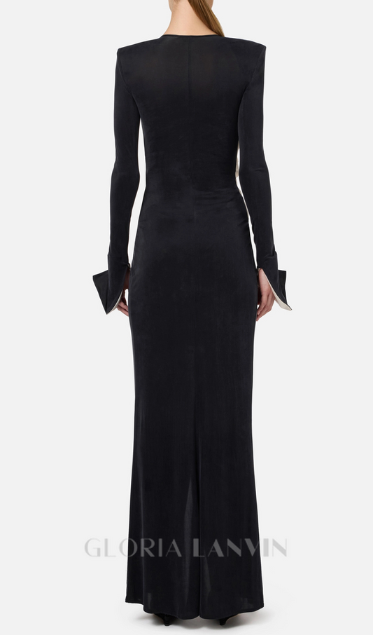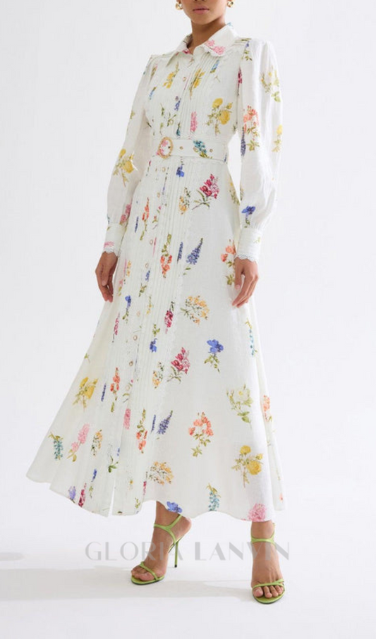 LONG CUFFED SLEEVES FLORAL MAXI DRESS