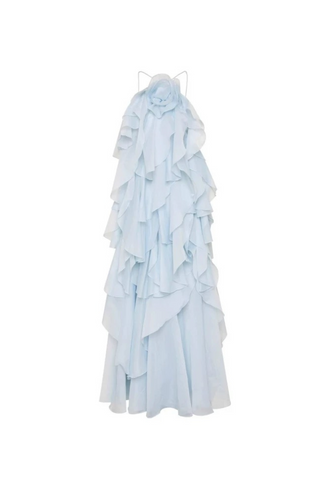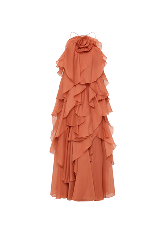 Caysie Halter Floral Ruffle Layered Maxi Dress in Orange