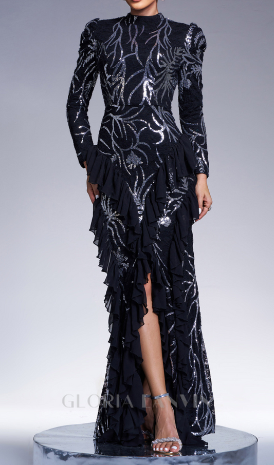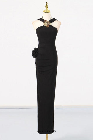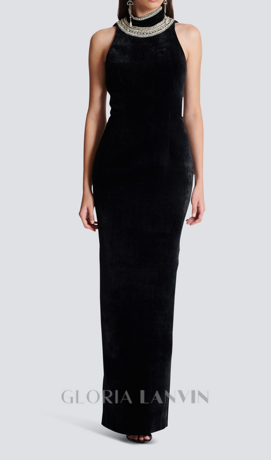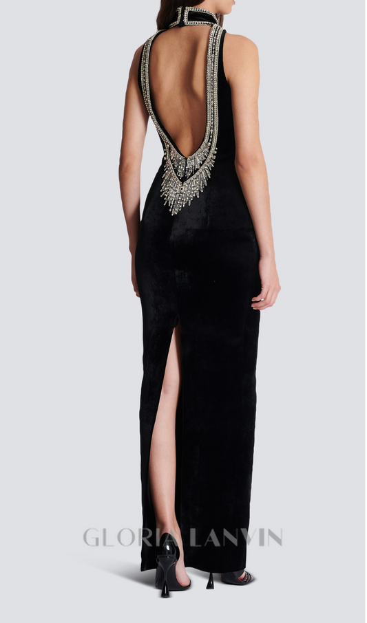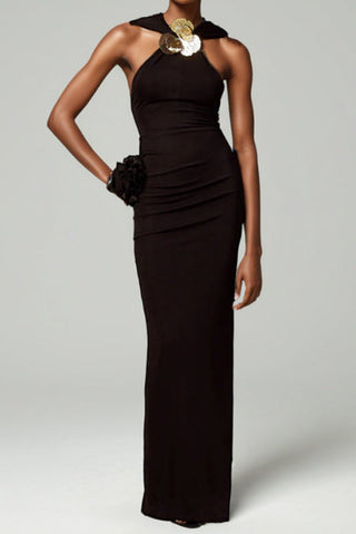 ANNONA BLACK FLOWER EMBELLISHED MAXI DRESS