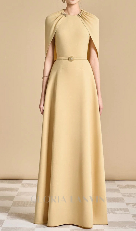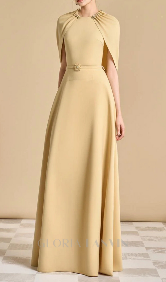 Jasmine A-line Cape Sleeved maxi Dress in yellow beige