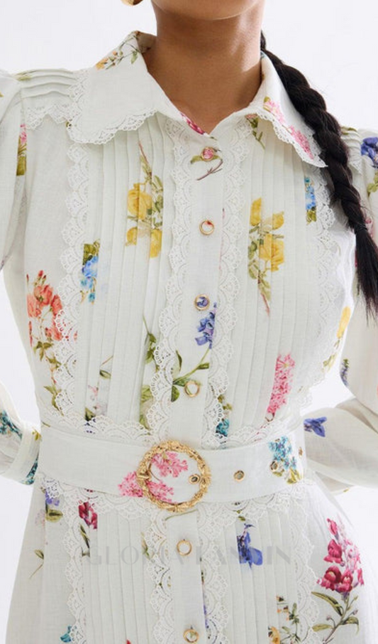 BELTED PRINTED RAMIE MAXI SHIRT DRESS