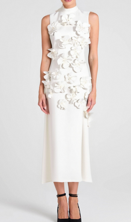 ANNONA WHITE FLOWER EMBELLISHED MAXI DRESS