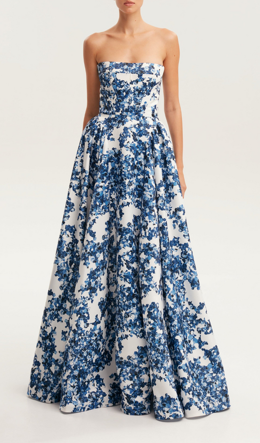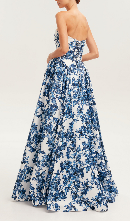 LETITIA BLUE HYDRANGEA STRAPLESS MAXI DRESS