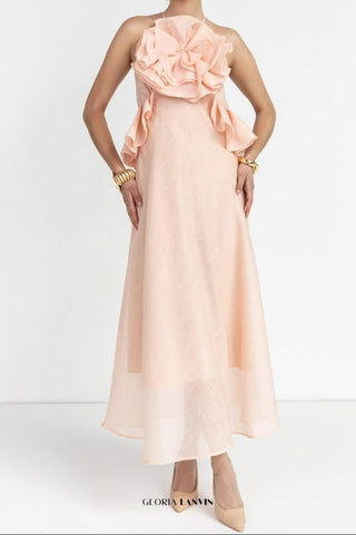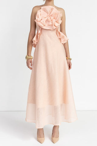 ANNONA PINK FLOWER EMBELLISHED MAXI DRESS