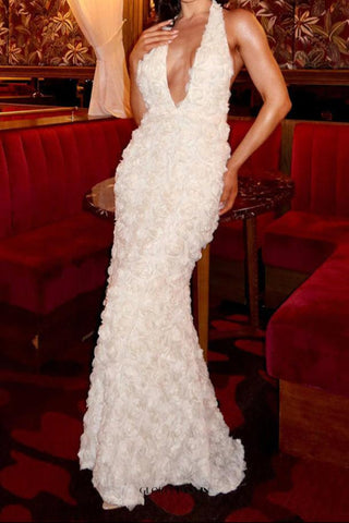 cynthia 3D Flower v-neck Sleeveless bodycon Maxi Dress in pink
