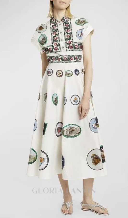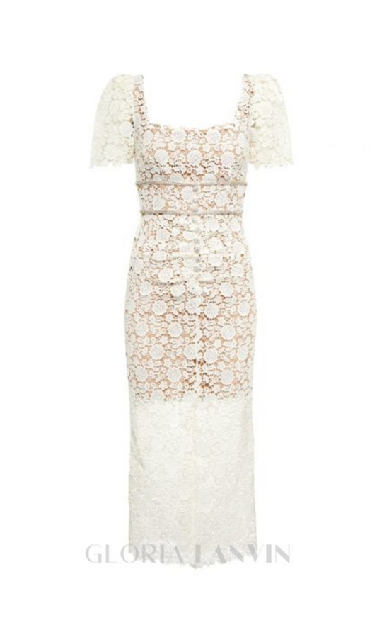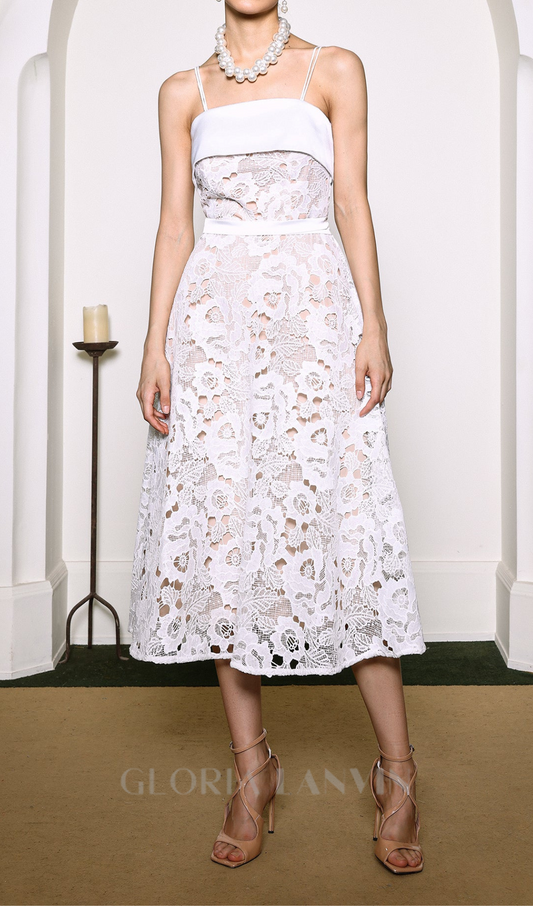 EVELYN CUT OUT LACE LAYERING MIDI DRESS IN WHITE