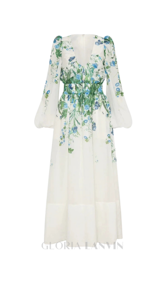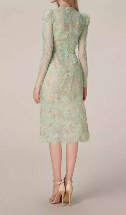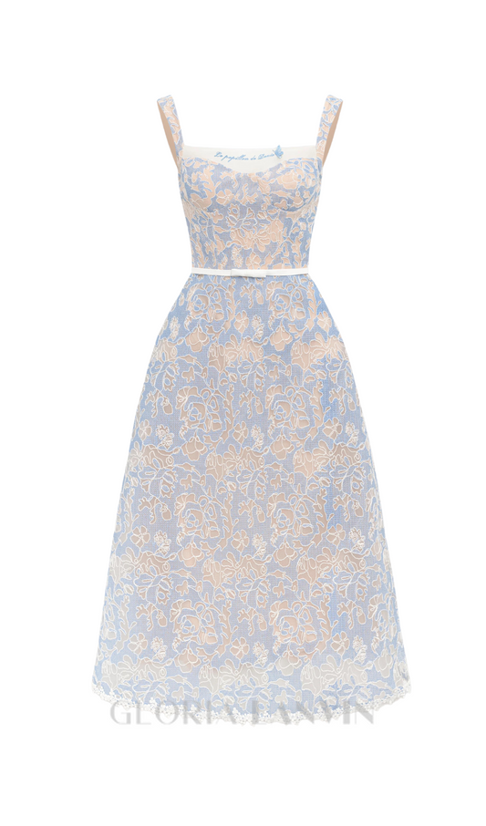BLUE FLORAL LACE EMBROIDER MIDI DRESS