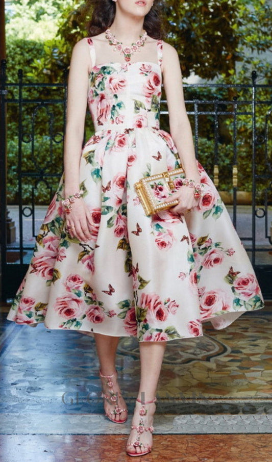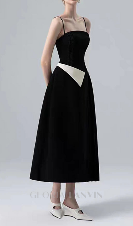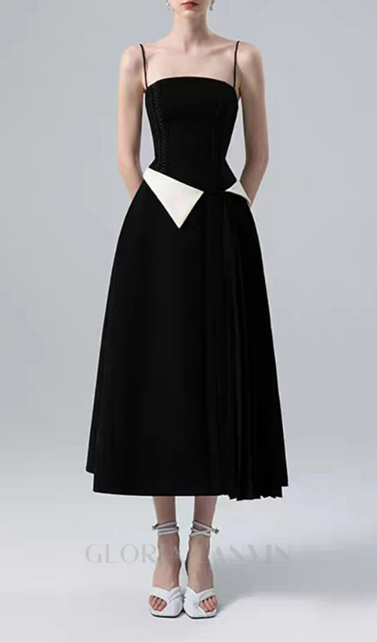 Hyacinth A-line Spaghetti Strap Polyester Midi Dress