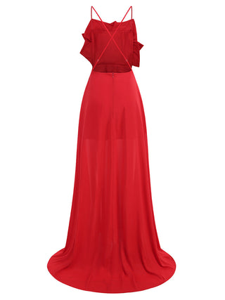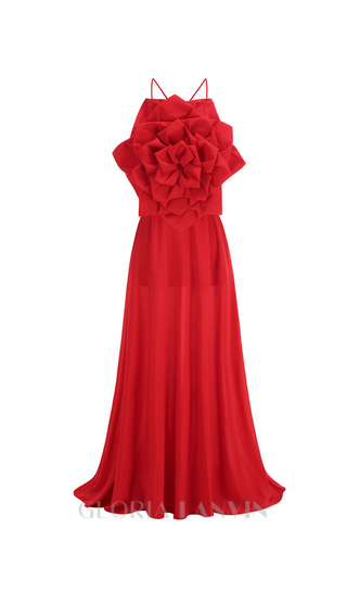 winifred 3d flower strap maxi dress in red