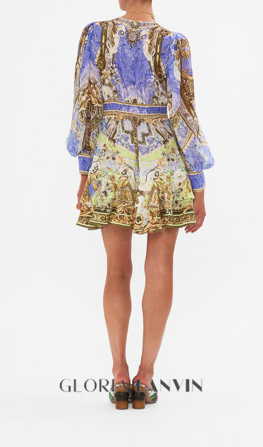 CONTRAST COLOR PATCHWORK RUFFLE MINI DRESS
