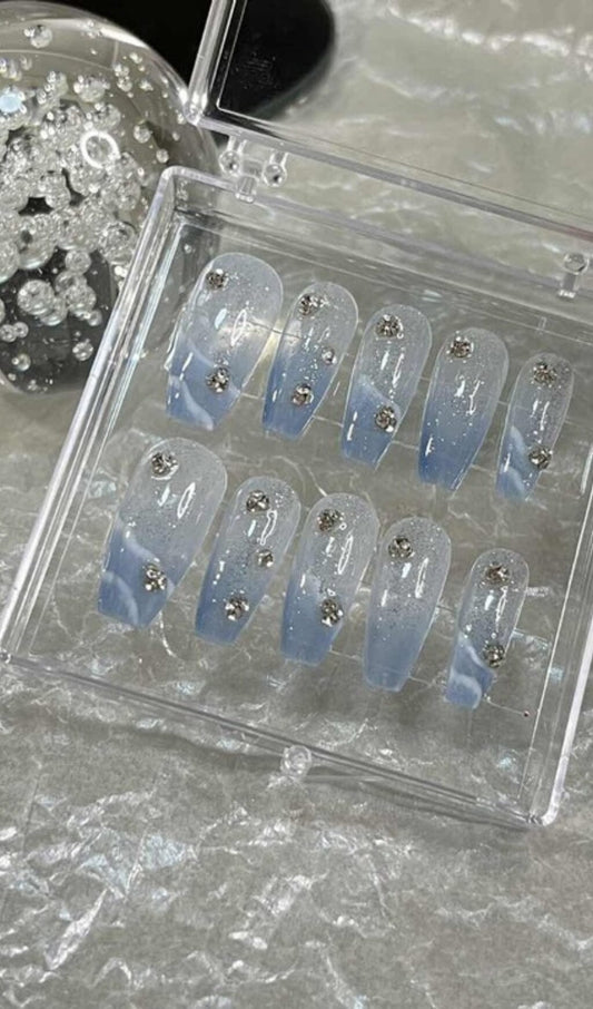 BLUE CRYSTAL GLITTER PRESS ON NAILS
