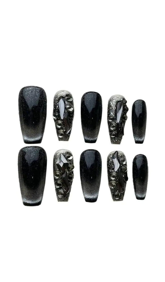 BLACK CAT EYE CRYSTAL HANDMADE PRESS ON NAILS