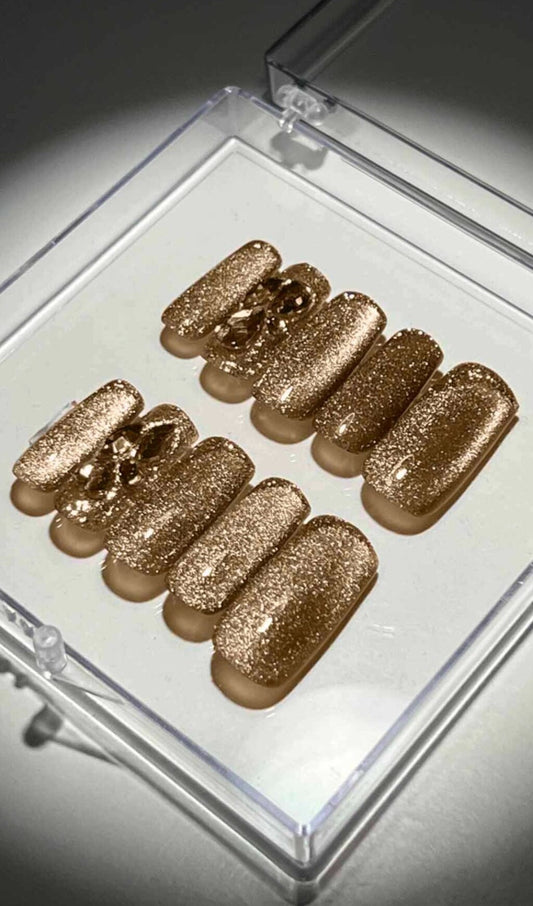 GOLD CAT EYE HANDMADE PRESS ON NAILS