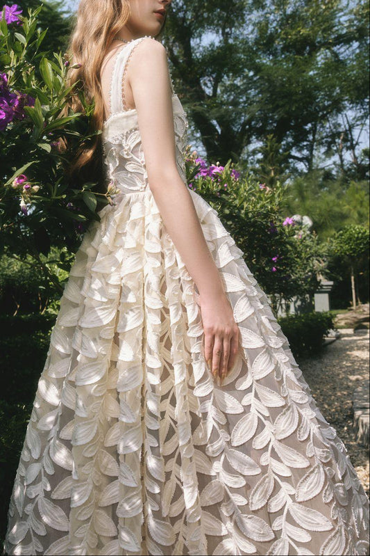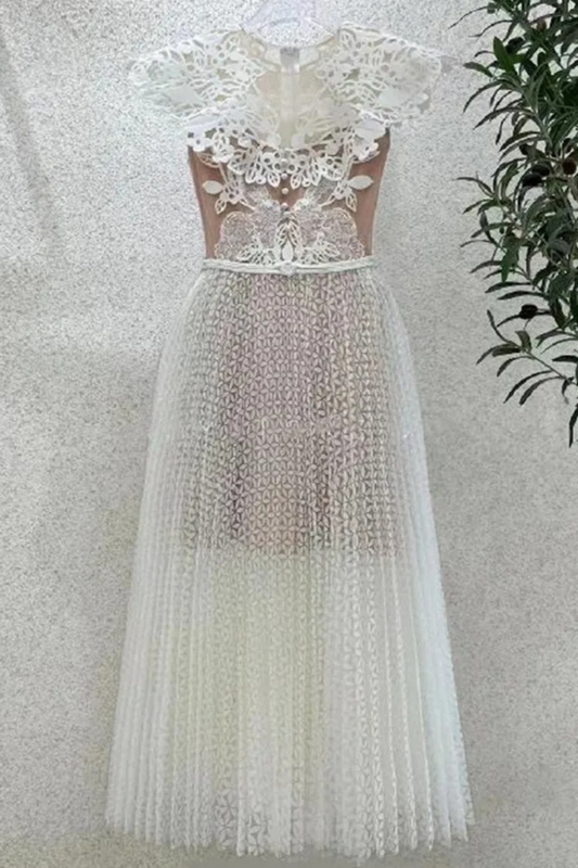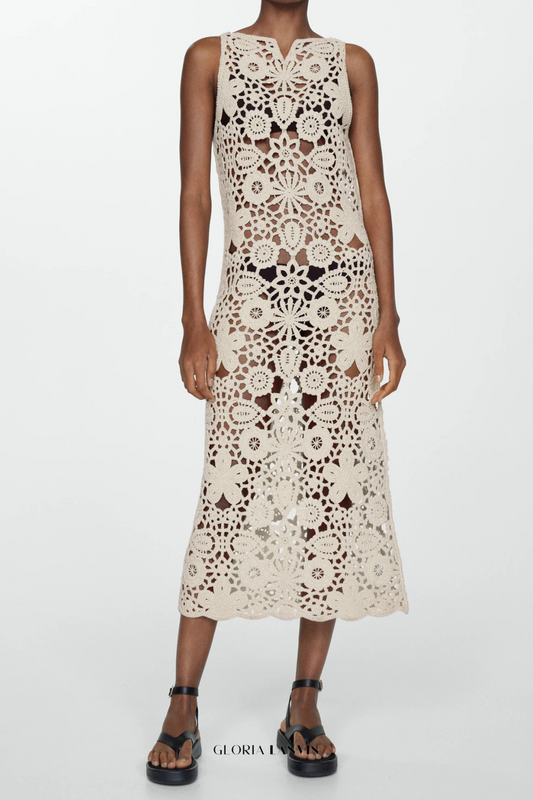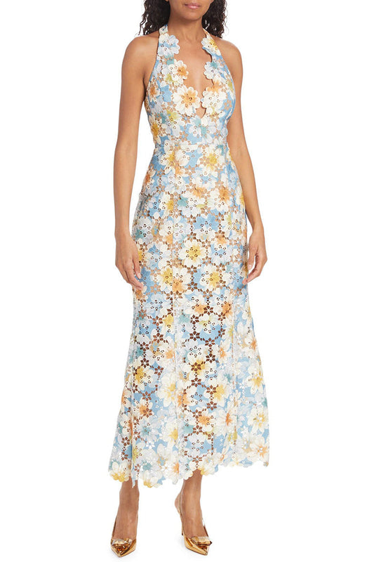 TESS LACE STITCHING HOLLOW SLIT MAXI DRESS IN APRICOT