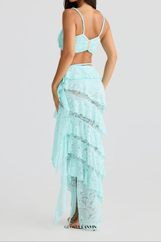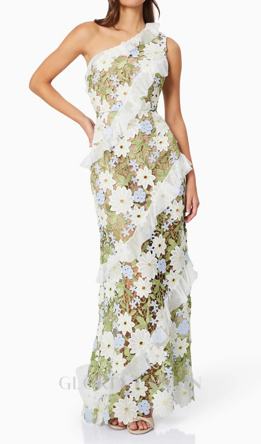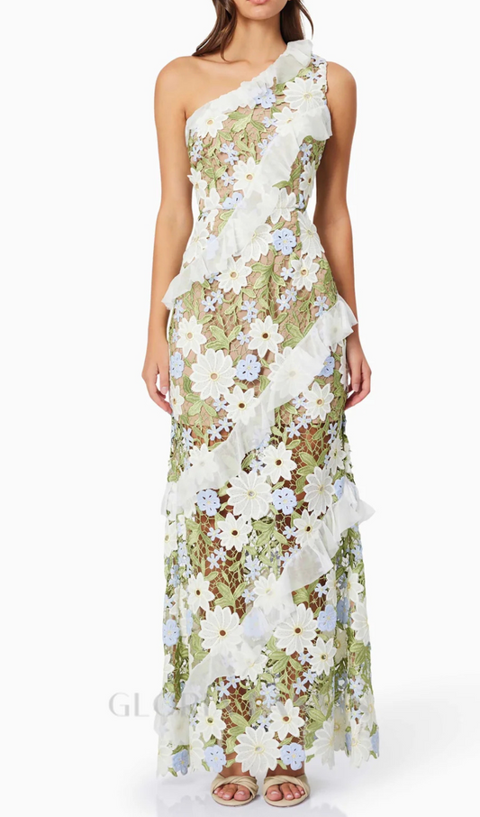 TESS LACE STITCHING HOLLOW SLIT MAXI DRESS IN GREEN