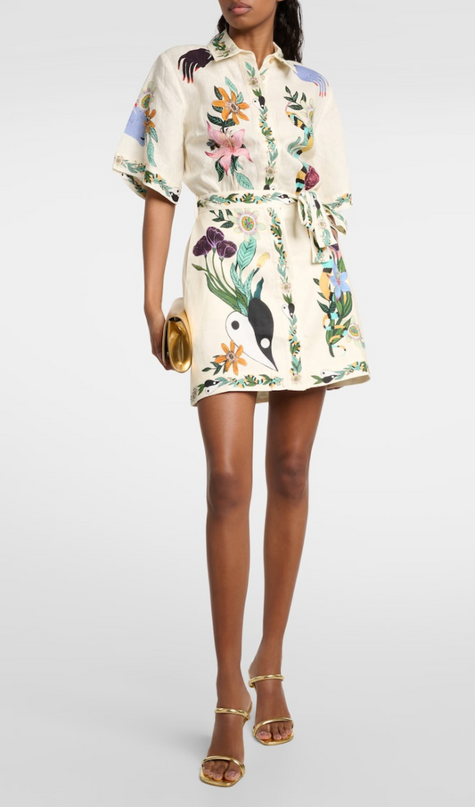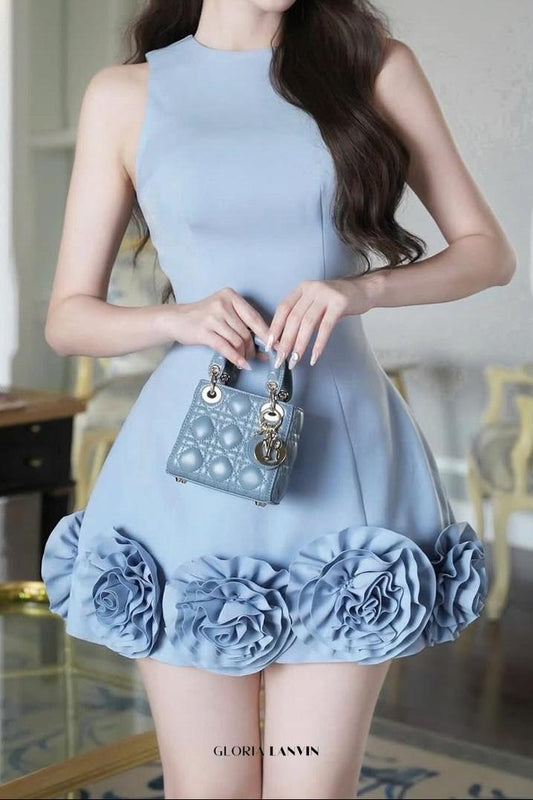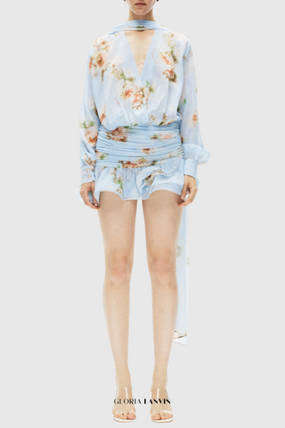 Shelyn Flower One Shoulder Ruffle Mini Dress - Pink