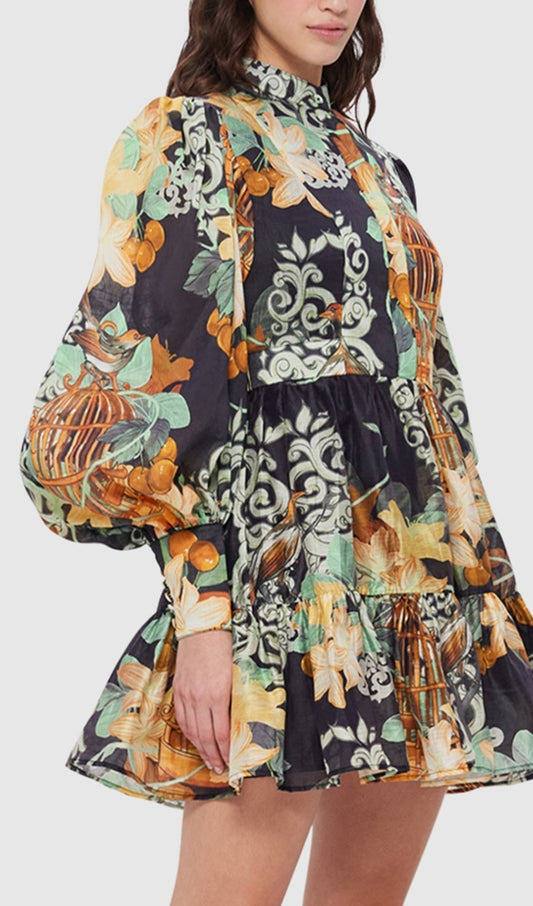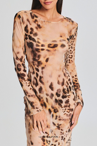 JUNGLE PRTINTED MIDI DRESS IN CHOCOLATE