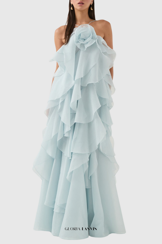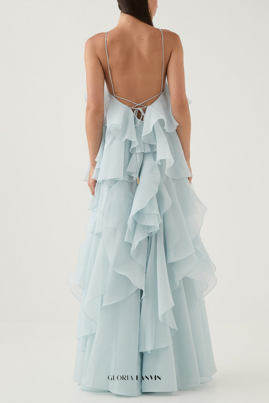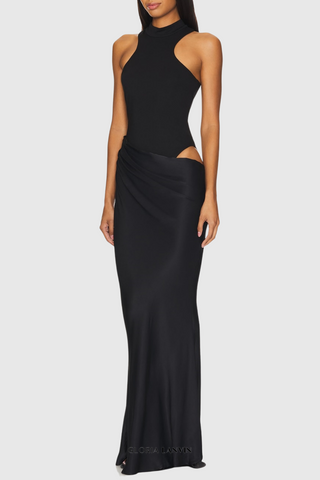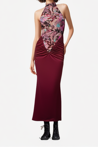 WENDY PLUNGING HALTER BACKLESS MAXI DRESS IN RED