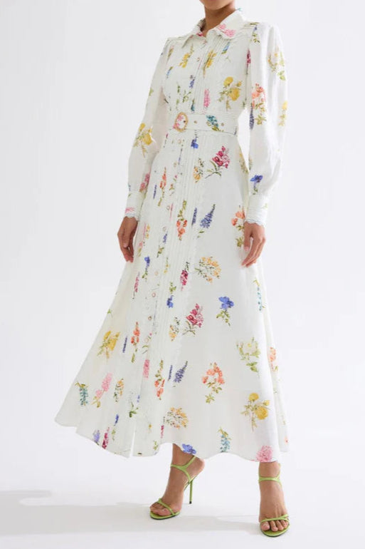 NATALIE PUFF SLEEVE OFF SHOULDER WHITE LACE MIDI DRESS