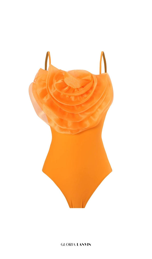 nancy Ruched Flower One Piece Swimsuit In Mocha Mousse