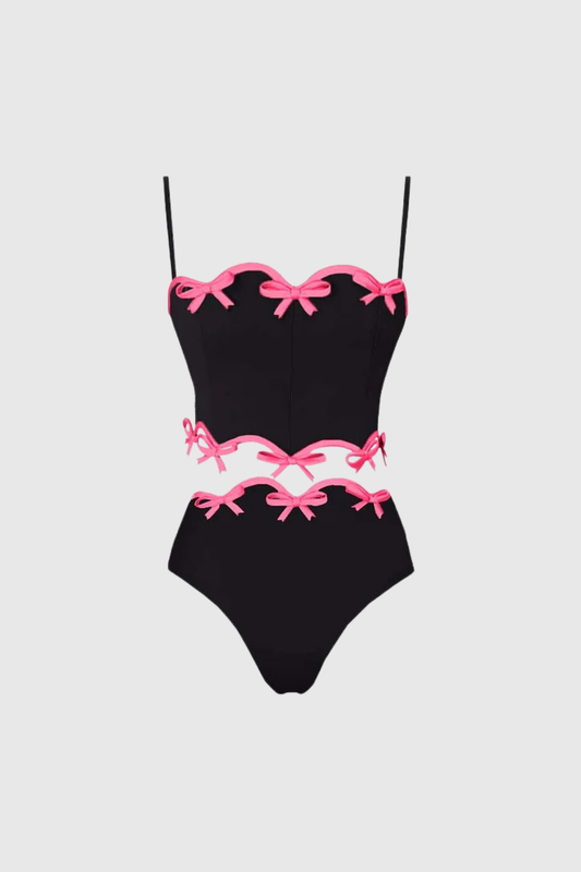Doman Pink Mesh Embellished One-Piece Swimsuit